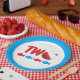 Pescar presentes de segundo aniversário com bobber e peixe vermelho e azul