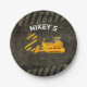 Placa de papel do segundo aniversário preto & amarelo do veículo da construção