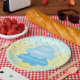 Dois Doce! segundo aniversário sorvete com aspersão azul, amarela e verde e fundo de aquarela.