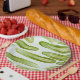 Picles verdes cortados ao meio. Presente perfeito para o amante de picles na sua vida. Ou se alguém que você conhece está entrando no pijama, este é um presente fofo também.