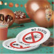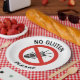 Ícone de trigo em círculo proibido vermelho. Sinal de graça. Dois campos de texto personalizados em círculo.
