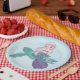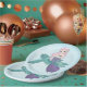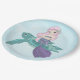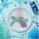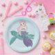 A bela Sereia de Cartoon Pink Haired, com cauda multicolorida, sentada sobre uma placa de papel de tartaruga marinha, pode facilmente adicionar o nome da criança de aniversário para um toque pessoal.