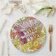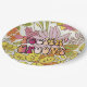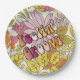 Conjunto de oito placas de papel de 9" com "Feelin' Groovy" impressas em letras estilo 60s através de uma imagem antiga de flores cor-de-rosa, laranja e amarela, nos anos 60. Ver pote de doces correspondente, copo espresso, frasco, caneca, jarro, vidro alveolado, bule de chá e portas copos. Veja toda a coleção de placas Psychedelic 60s na COMIDA/BEV | Seção pratos.