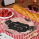 Prato De Papel Sequências Pretas e Rosa Agitam Aniversário
