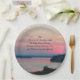 Chapas de papel para um almoço ou janto sentado e mostra a foto de um pôr do sol colorido, rosa, sobre a água, juntamente com as palavras inspiradoras da Oração Serenidade. Perfeito para sociais de grupos de suporte de recuperação! Selecione o tamanho da sua placa de papel.