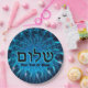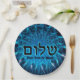 Texto escuro lendo "Shalom" (ש ל ו ם - "paz" hebraica) sobreposto a uma imagem fractal azul mais leve. Adicione seu próprio texto adicional.