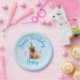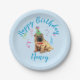 Feliz aniversário com este design bonitinho com um sorridente e festejante cachorro de Shar-Pei chinês vestindo chapéu, cercado por galhos coloridos. O nome pode ser facilmente alterado; basta clicar no botão personalizar.