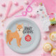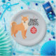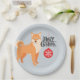 Cartões de natal da sua raça favorita de cães. Cão Shiba Inu com texto "Feliz Natal" e Enfeites de natal vermelho.