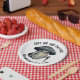 O janto ficou encantador. Esta placa de papel apresenta um cogumelo fantasmagórico com uma faca — espírito de floresta de partes estranhas, uma energia caótica em tempo-de-estalo. Uma obrigação para festas de Halloween, noites de filmes de terror, ou qualquer um que goste da sua fantasia com um lado de bunda. Serve os tratamentos com atitude!