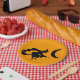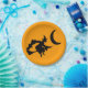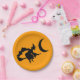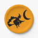 Silhueta de Bruxa Voadora sobre fundo laranja.