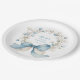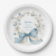 Serve your guests with a touch of boutique charm using these Silly Goose Blue Ribbon & Berry Paper Plates. This elegant design features a delicate watercolor wreath of seasonal berries in soft shades of dusty blue and cream. A large, beautifully rendered blue bow, accented with a shimmering gold star pattern, serves as the sophisticated focal point at the base of the plate.