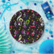 Símbolos e notas musicais coloridos com música, notas, clf, triplo, quaver,baixo,crochê sobre fundo negro