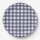 Simple, minimal navy gingham pattern paper plate.