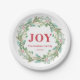 Prato De Papel Simples Elegante Wreath Joy Natal Moderno