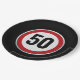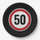 Prato De Papel Sinal circular vermelho na estrada com idade de an
