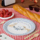 Prato De Papel Sinal de boas-vindas do Chá de fraldas Gingham Azu