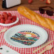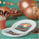 Adicione um toque de diversão retrógrada à sua festa com estas placas de papel com um esqueleto captando ondas numa prancha de surfe contra um pano de fundo vibrante do pôr do sol. Perfeito para qualquer evento com tema de praia, estas placas trazem uma legal vibração de costas para a sua mesa.