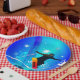 Prato De Papel Snowboarding, snowboarder com o conselho no backg