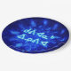 Um enxame de flocos de neve fractais azuis. O texto do Inuktitut que lê "Kuvianak Innovia" (ᑯ ᕕ ᓇ ᒃ+ᐃ ᓄ ᕕ ᐊ - Feliz Natal), no alfabeto sílabo adotado em Nunavut, também aparece em azul e branco brilhantes. Os Inuit são geralmente chamados de esquimó, mas esse termo é agora desfavorecido, pois é considerado pejorativo.