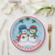Brilhe a sua Mesa de Natal com estes Pratos do Partido "Um dos Tipos"! Sr. & Sra. Frosty O Homem de Neve está pegando um Rolo de Natal Mágico através de uma "Terra das Neves do Inverno"! Belas Artes Original do Artista Kerry Miller.