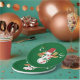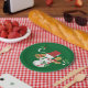 Estas lindas placas de papel de bonitão vão agradar a crianças de todas as idades, e são apropriadas para qualquer reunião de férias. Eles apresentam um adorável boneco de neve vestindo um chapéu e carregando uma cana doce listrada vermelha e branca que é amarrada com um arco verde bonito. Atrás dele está uma fita branca com santos e dois sinos de ouro. As imagens são colocadas sobre um fundo verde de férias escuro. Bonita! Certifique-se de ver os guardanapos de papel, xícaras e outros produtos na nossa loja.