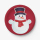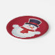 Prato De Papel Snowman de Natal em Fundo Vermelho