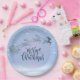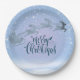 Create a magical festive atmosphere with this elegant Merry Christmas paper plate featuring a snowy winter wonderland theme. Designed with a soft frosty blue gradient, falling snow, and a classic silhouette of Santa’s sleigh and reindeer flying overhead, this plate is perfect for Christmas dinners, winter parties, holiday buffets, and seasonal celebrations. The hand-lettered script adds a warm, traditional touch. Pair with matching napkins, cups, and festive décor to complete your winter-themed table setting.