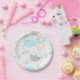 Sob as placas de papel do mar há uma baleia, um tubarão-tigre, geleia, tartaruga-do-mar e cavalo-do-mar, conchas e estrelas-do-mar.