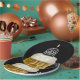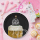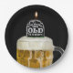 Torre preta em caneca de cerveja em preto por cima da festa de aniversário.