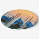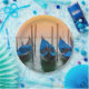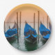 Um cenário pacífico ao lado do Palácio do Cachorro em Veneza, Itália, com quatro gondolas, todos juntos apontando para um belo pôr do sol.
