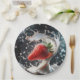 Um morango vívido e maduro espalha dinamicamente através do leite em espiral, criando uma mistura energética de movimento e cor