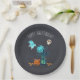 Feliz Halloween escrito em texto curvo em algumas placas de papel. Projetado com uma cena assustadora de halloween. Um fantasma azul gelado flutua no ar. Uma velha árvore morto tem uma coruja sentada em seus galhos e um morcego pendurado de cabeça para baixo. Morcegos voando ao redor de uma lua de cheio. O doce encheu-se de uma abóbora de dentro Brim com milho doce espalhado. Um crânio paira no ar. Colocado sobre um fundo preto de quadro negro.