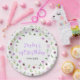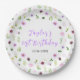 This beautiful and elegant plate features watercolor purple flowers and foliage. The text combines handwritten script and serif fonts for a stylish and modern look. This is perfect for a spring rustic birthday party.