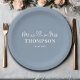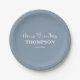 Adicione um pouco de elegância e sofisticação à sua próxima ocasião especial com o Sr. e a Sra. Elegante Simple | Dusty Blue Paper Plates personalizados com seu nome de família e data do casamento.