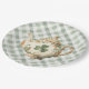 These whimsical St Patrick's Day paper plates features a watercolor Clover Tea Pot with a coordinating green and white gingham background.