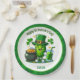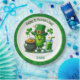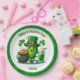 Happy pickle celebrating St. Patty's day with a pot full of gold coins.