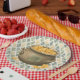 These whimsical St Patrick's Day paper plates features a watercolor pot of gold with a coordinating green and yellow diamond background.