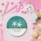 Prato De Papel Starfish branco no casamento de praia manchada de