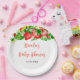This beautiful and elegant plate features watercolor strawberries, daisies and foliage. The text combines handwritten script and serif fonts for a stylish and modern look. This is perfect for a spring or summer rustic baby shower.