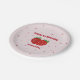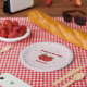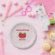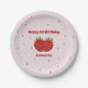 Chapas de papel de morango com bolinhas sobre fundo cor-de-rosa para uso como festa de aniversário. Você pode mudar a mensagem e usá-la para um chá de panela, um casamento, uma festa de verão ou qualquer coisa que quiser!