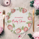 A soft and whimsical baby shower design featuring hand-painted forest animals enjoying a sweet strawberry picnic under a lush watercolor tree. This charming layout includes a delicate banner, strawberries in bloom, and a cozy woodland cottage shaped like a strawberry — the perfect blend of storybook magic and rustic elegance.