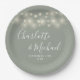 Chapas de papel verde elegantes para casamento, com luzes bonito de cordas, nomes de estilo de assinatura e data especial para o seu casamento. Projetado por Thisnotme©