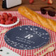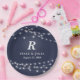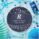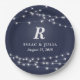 Sua noiva e noiva favoritas amará esta placa de papel personalizável, com seu dia de casamento ou aniversário! Cordas de luzes brancas rodeiam um monograma, nomes de casais e data de casamento ou outra ocasião especial. Você pode alterar a cor de fundo do marinho clicando no botão Personalizar. Faz um lindo, moderno, acessório partidário personalizado.