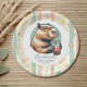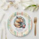 Prato De Papel Striped Funny Capybara Custom Name Baby Shower