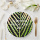 O padrão tropical riscado nestas Placas de Papel foi feito a partir de uma fotografia original de ZoeSPEAK de uma palma real à luz do sol, contra um fundo verde-escuro de pinheiros. O contraste é forte entre o fundo escuro e as folhas verdes amarelas com seus destaques cor-de-rosa salmões, fazer este desenho abstrato da natureza se pareça quase com uma impressão animal. Há um texto que é definido para você personalizar para se adequar à ocasião, ou deletar se preferir.