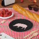 Este prato espetacular tem um porco rosa estilo cartoon. Tem a cabeça baixa pronta para engolir qualquer comida que encontrar.