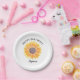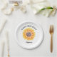 Esta Prata de Papel de Aniversário é decorada com um girassol amarelo e Feliz Aniversário. Facilmente personalizável. Original Watercolor © Michele Davies.
