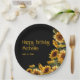 Prato De Papel Sunflower Black Rustic Elegant Feliz Aniversário