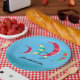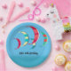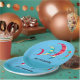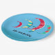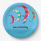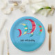 Chapas de papel do tema de surfe de pipa azul com texto personalizável. Papagaios de cor brilhante em vermelhos, azuis, amarelos e verdes adornam as placas.