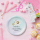 Adorable first birthday Paper Plate design featuring cute honey bees, soft pastel colors, and a sweet bee-themed aesthetic. Perfect for a “Our little sweetie is turning one” celebration, this customizable design is ideal for first birthday parties, baby celebrations, and bee-themed decor. Personalize with your child’s name and party details to create a charming and memorable keepsake.